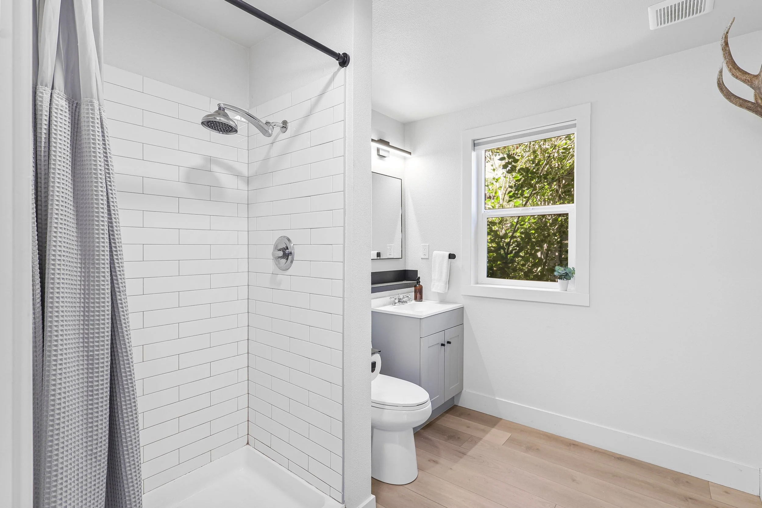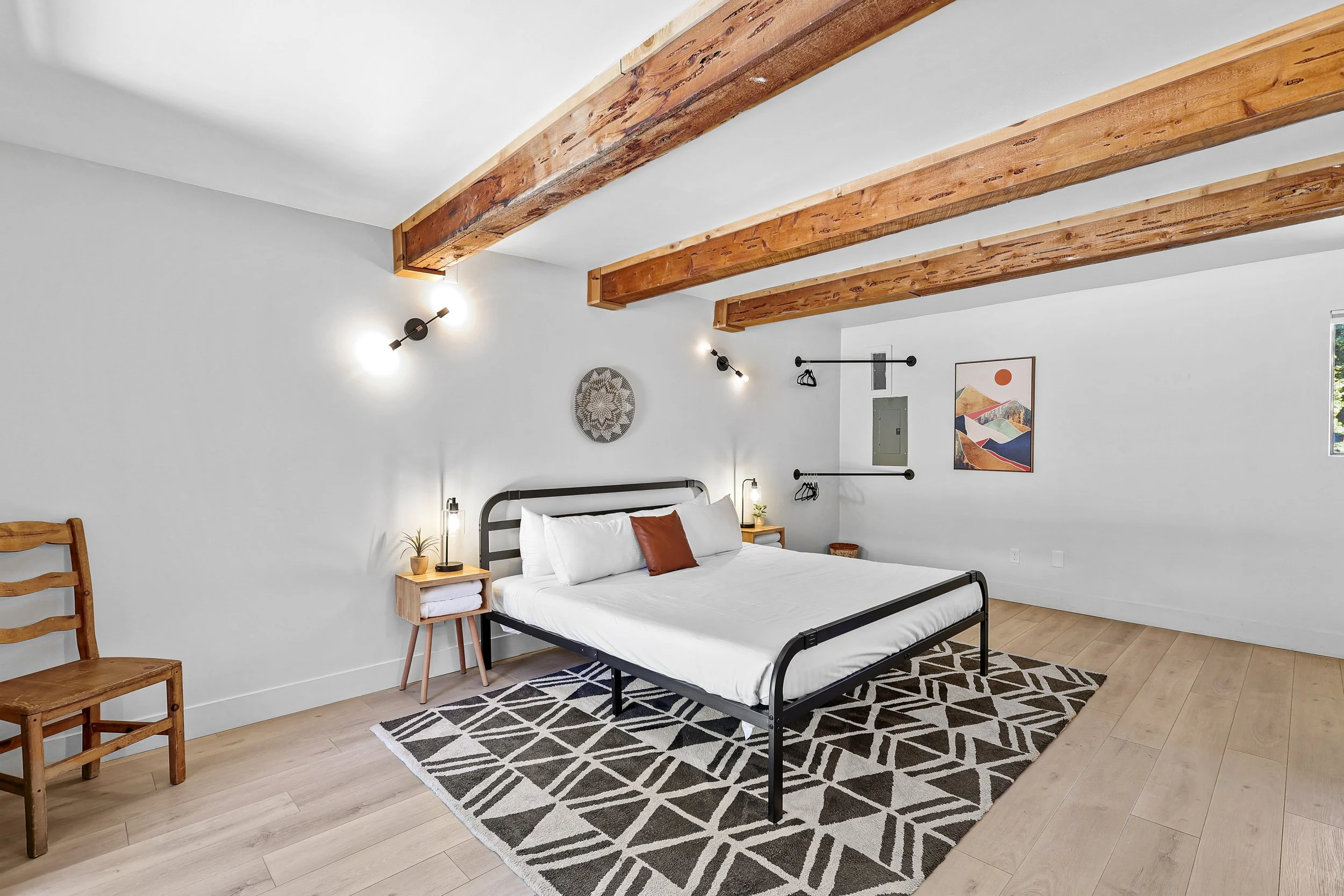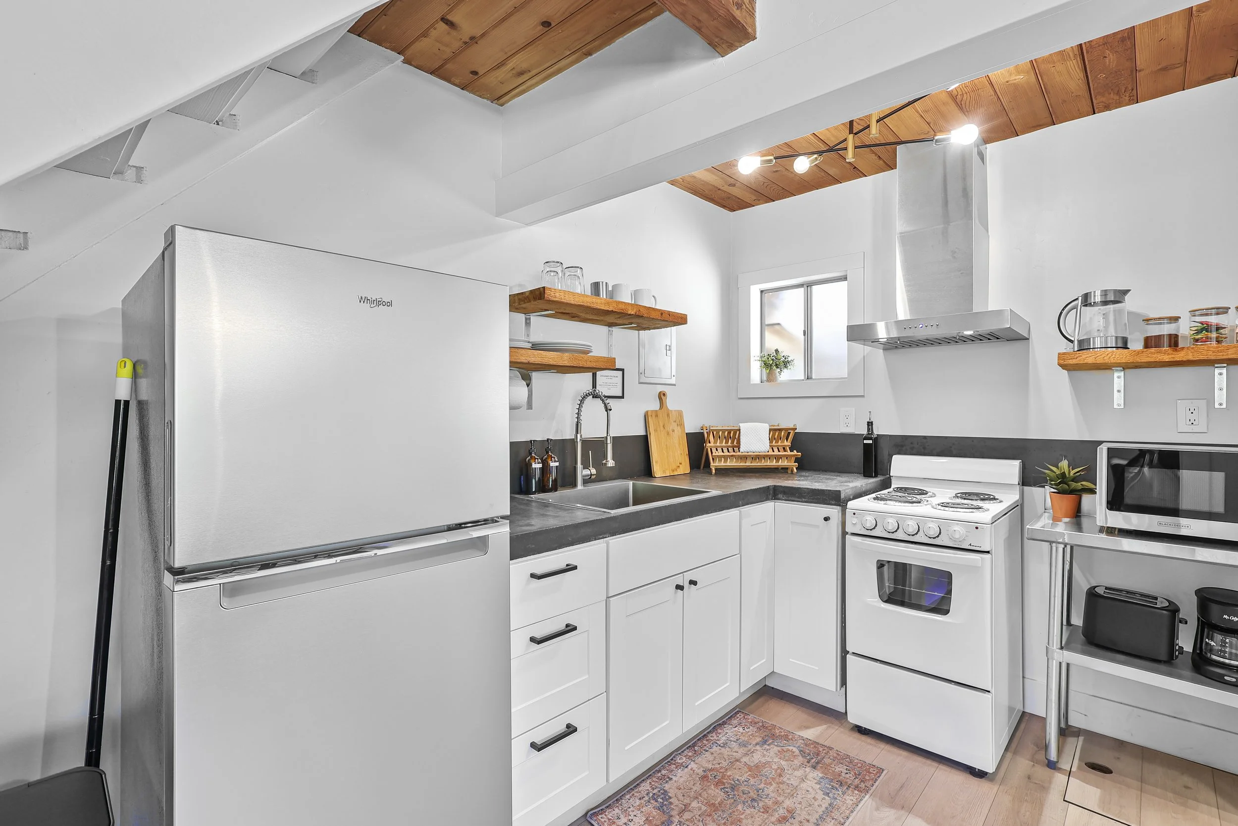 Head outside to the Adirondack chairs and hammocks to relax, sip your coffee and watch the sunrise over Mt Shasta or gaze at the stars. Eat a meal on one of the picnic tables or play a game on the corn hole set. The backyard is lit with cafe string lights and wall sconces.